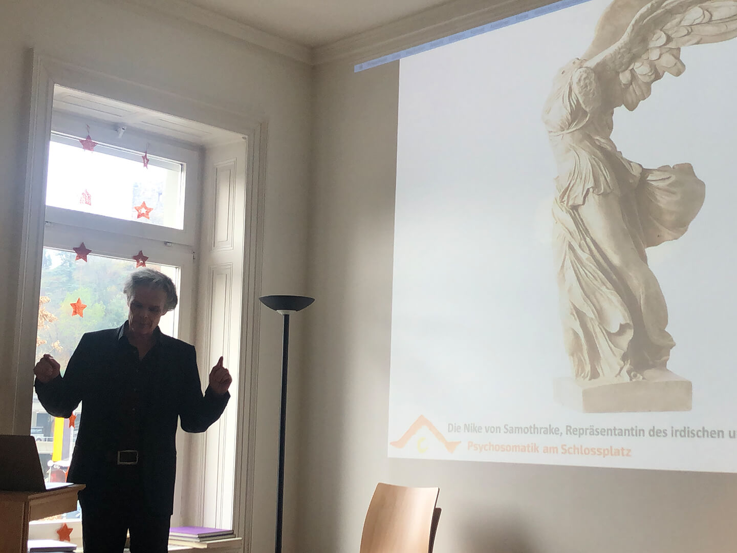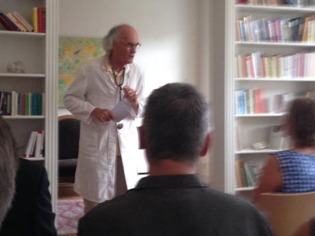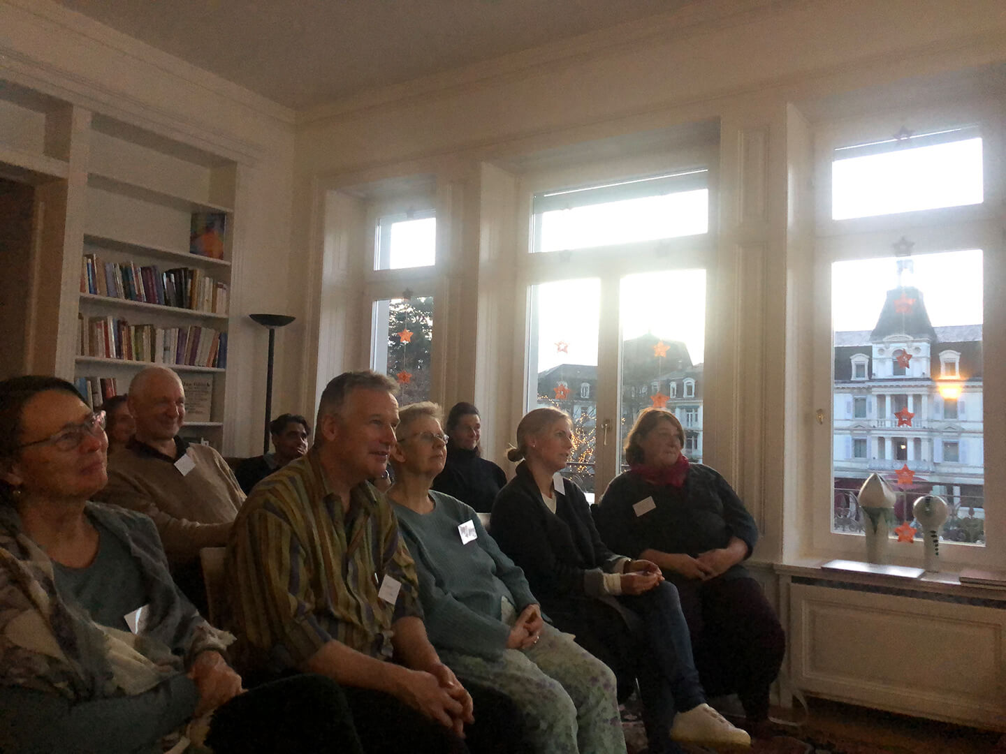 Aus vielerlei Hinsicht waren dieser Nachmittag und Abend überaus beeindruckend und belebend. Schon das Gebäude, eine wunderschön renovierte Vorgründerzeit Villa am Schlossplatz, ist ein Phänomen. Es ist Dr. med. Monika Spahl, Gründerin der Psychosomatischen Ambulanz, gelungen, in den eleganten und sehr geschmackvoll gestalteten Räumlichkeiten eine aussergewöhnlich wohltuende Atmosphäre zu zaubern. Monika Spahl und ihr Team empfangen die Gäste mit einer selten gewordenen menschlichen Herzlichkeit, so dass sich die zahlreichen Anwesenden wahrlich willkommen fühlen. Ein ganz besonderes Wohlbehagen stellt sich in dieser Atmosphäre ein, ganz so, als ob sich - scheinbar wie von selbst - die eigene Seele öffnet und entfalten mag. Diese einzigartige, sehr angenehme und lichtvolle Umgebung lässt die Potenziale einer besseren Welt erahnen, in der es selbstverständlich ist, dass Menschen im Einklang mit ihrem innersten Wesen handeln und weckt die Sehnsucht, diese Art des Seins und Lebens im eigenen Alltag aufleben zu lassen.